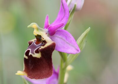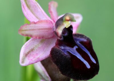 DAY 4. Our first full day in the Laconi/Ortuabis pass area, one of the richest areas for orchids in Sardinia, both in terms of species and sheer volume of flowering plants. We will make several stops around road edges where we will be amazed by the sheer number sof Pink Butterfly Orchid Anacamptis papilionacea and Anacamptis longicornu, and their hybrid is not rare either in this area! We will also explore some fields, grasslands, and light woods in order to observe some of the special rare species of this area, including a long list of endemic or near-endemic (shared with Corsica) species, such as Ophrys lepida, Ophrys ortuabis, Ophrys annae,Ophrys morisii, and , as well as some ‘less endemic’ species, but still with a limited range such as Ophrys iricolor eleonorae, or the hybrid between Orchis ichnusae and Orchis provincialis. Night around Laconi.